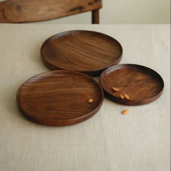 จานอาหารค่ำ ชุดจานไม้เนื้อแข็ง ชุดถาดเสิร์ฟไม้ธรรมชาติ