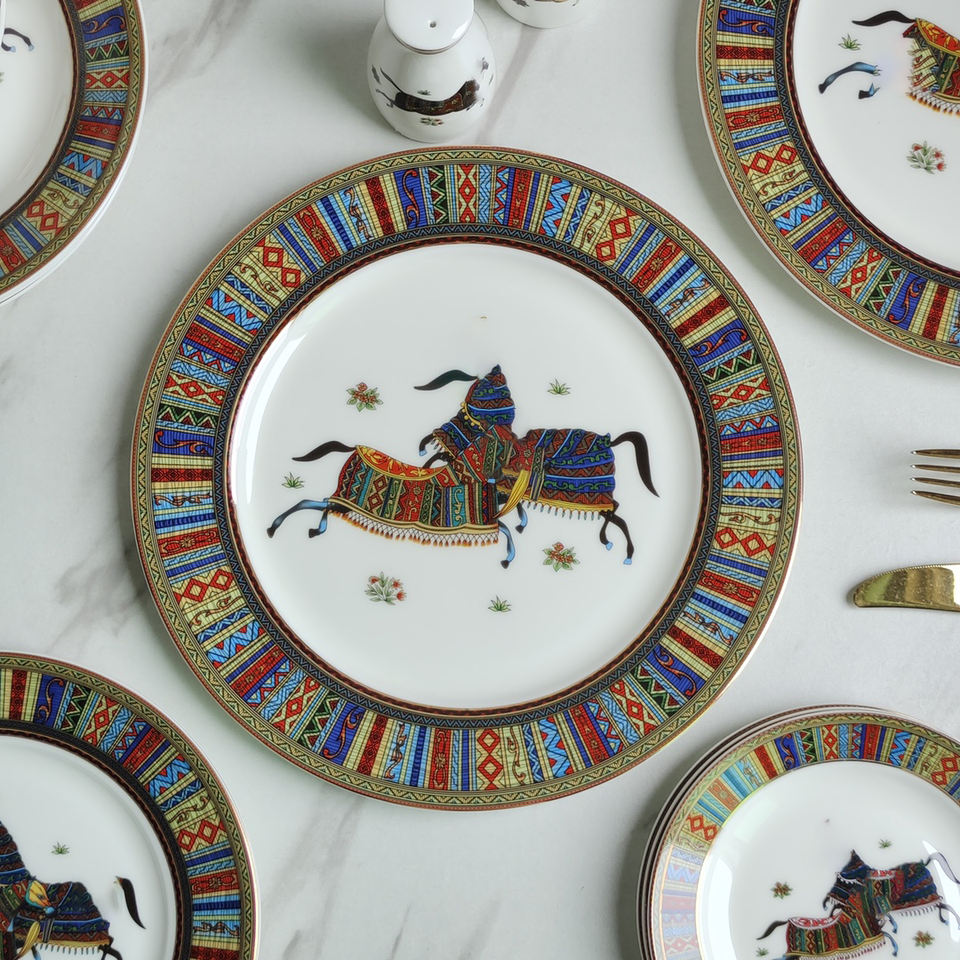 ชุดอาหารเย็นชุดเครื่องใช้ในครัวเซรามิกสวยงามลายม้าสี่ตัวพอร์ซเลนหรูหรายุโรปขายดี58ชิ้น