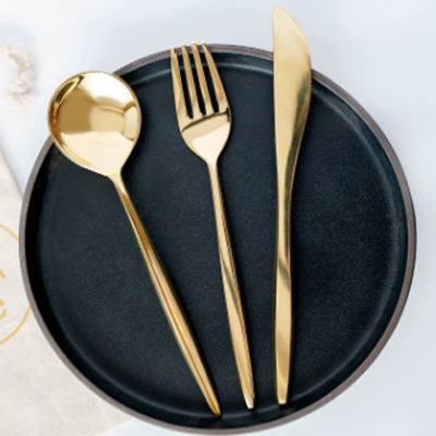 ชุดเครื่องใช้บนโต๊ะอาหาร3ชิ้นชุดช้อนรับประทานอาหารเย็นสีทองทองเหลือง