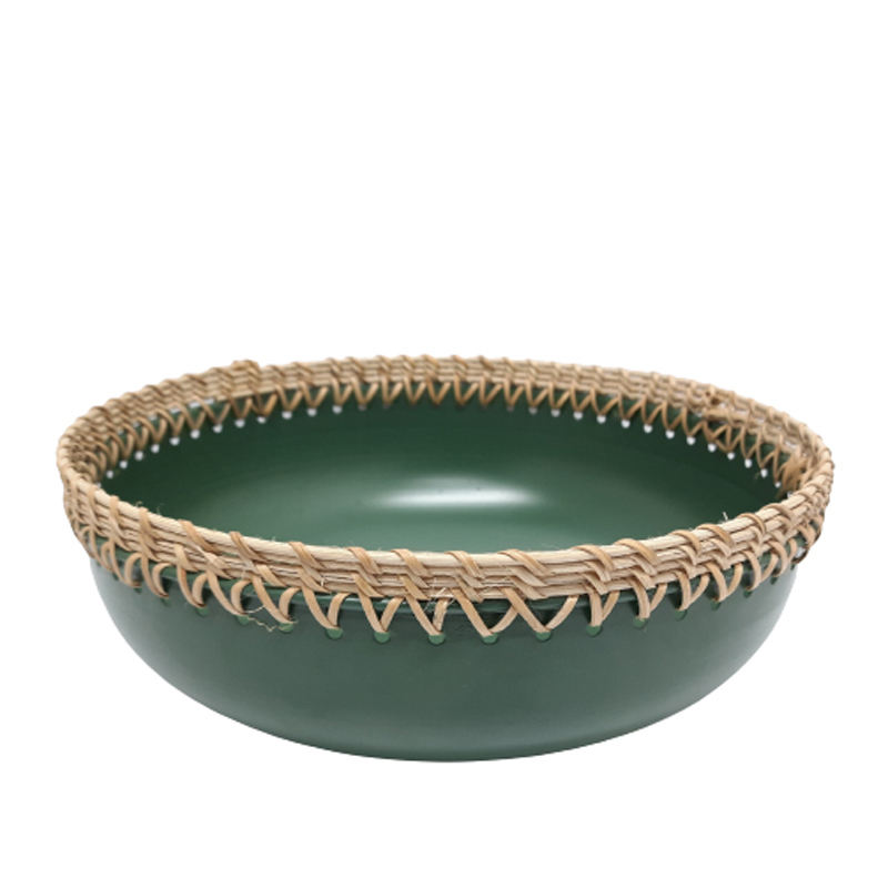 ชามสลัดเหล็กและอ้อยทรงกลมสีเขียวทหารและสีธรรมชาติสำหรับตกแต่งห้องครัวและงานแต่งงานออกแบบได้ตามต้องการ