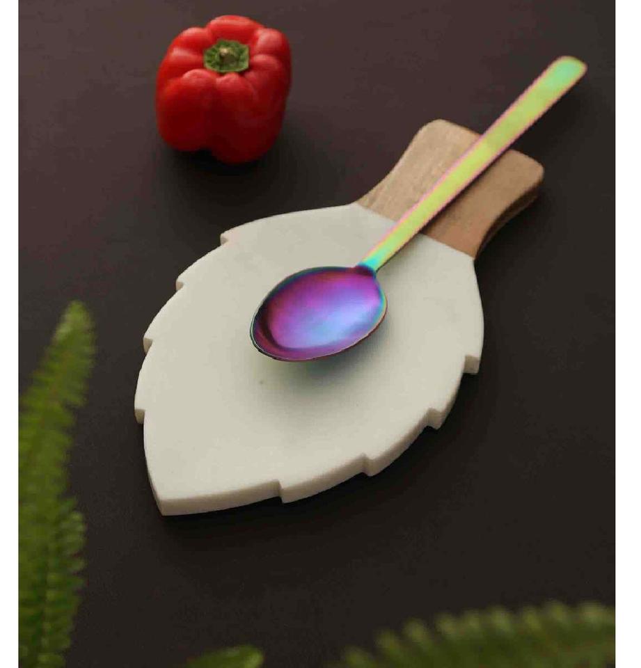 ภาชนะใส่อาหารดีไซน์หินอ่อนสีดำที่วางช้อนและที่หนีบหม้อ