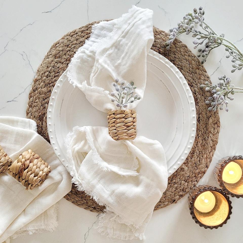 อุปกรณ์เสริมสำหรับรับประทานอาหารที่ใส่ผ้าเช็ดปากลายผักตบชวาแบบเรียบง่ายที่ใส่ผ้าเช็ดปากแบบมีน้ำหนักเบาสำหรับวางผ้าเช็ดปากบนโต๊ะ