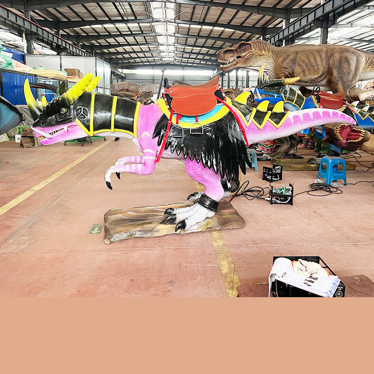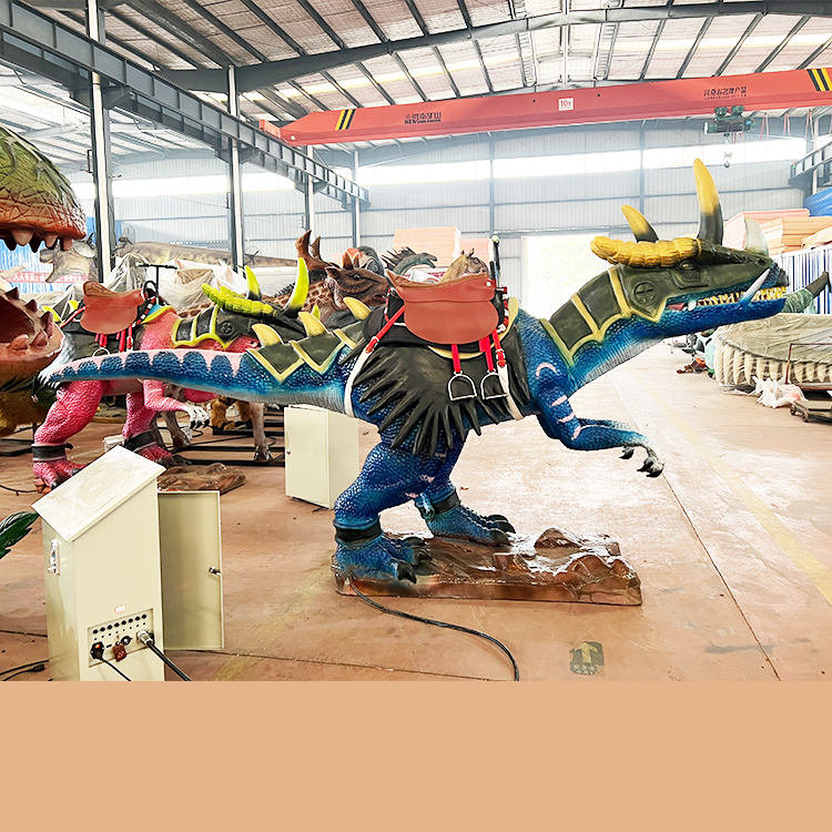 ไดโน่ไรเดอร์ผลิตไฟฟ้าสำหรับผู้ใหญ่ animatronic Dragon ขี่ไดโนเสาร์กลสำหรับสวนสนุก