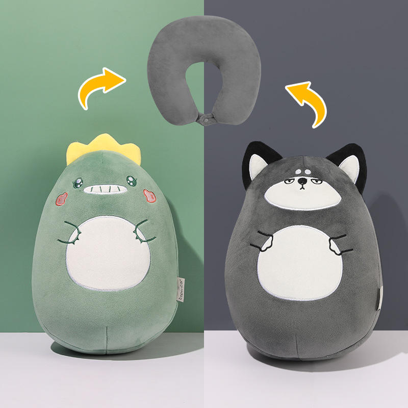 หมอนรองคอรูปตัวยูไดโนเสาร์ 28x26x14 ซม. รองรับคอแบบปรับเปลี่ยนได้สำหรับผู้ใหญ่ ดีไซน์การ์ตูนรูปสัตว์