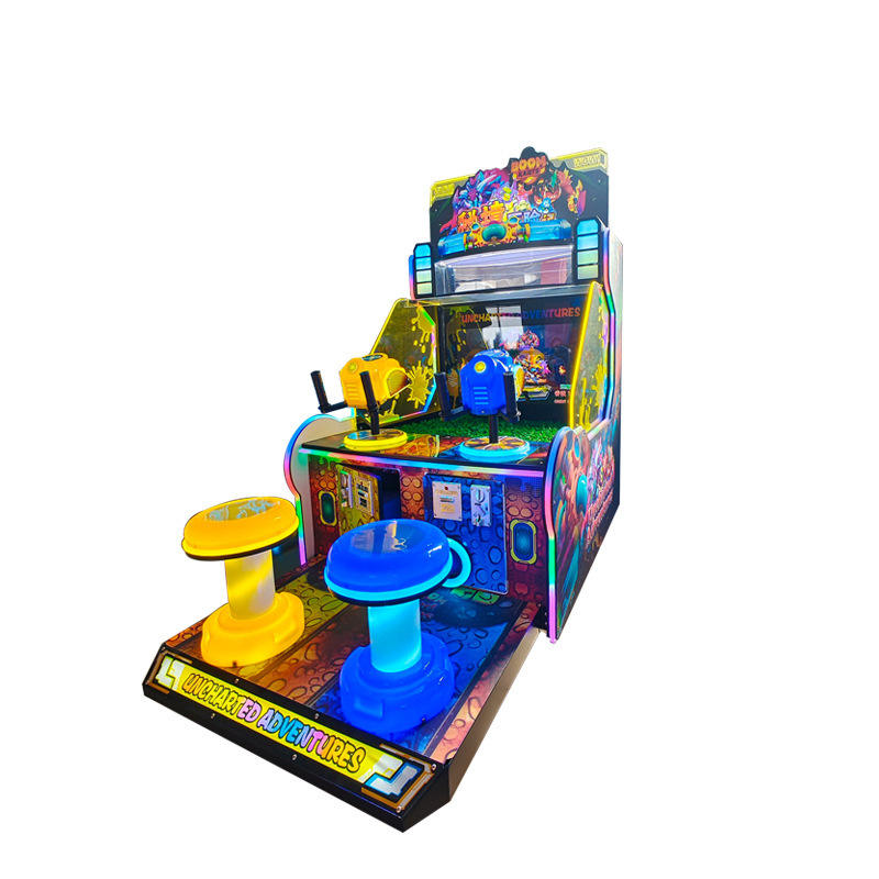 เครื่องยิงปืนฉีดน้ำอาร์เคดโลกไดโนเสาร์ขนาดใหญ่อุปกรณ์สนุกที่ใช้เหรียญเป็นภาษาอังกฤษสำหรับเด็ก
