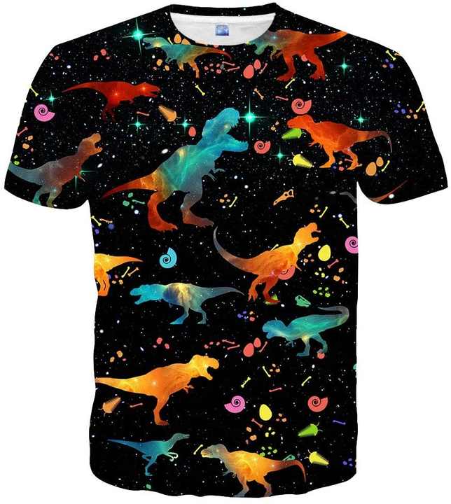 เสื้อยืดลายไดโนเสาร์พิมพ์ 3 มิติ ผ้าโพลีเอสเตอร์/คอตตอน ลายกราฟิกอวกาศสีสันสดใส สำหรับผู้ชาย ผู้หญิง วัยรุ่น สไตล์วินเทจ