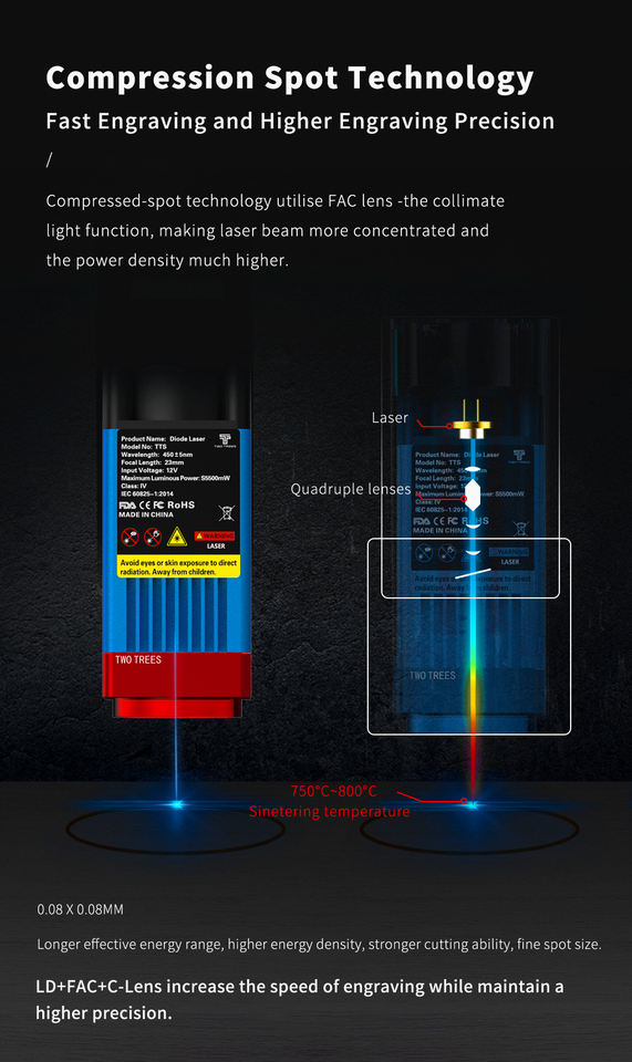 ขนาดจุดเลเซอร์:เลนส์ความยาวโฟกัส 0.08 มม.X0.08 WLD + 5.5 มม. FAC + C - 23