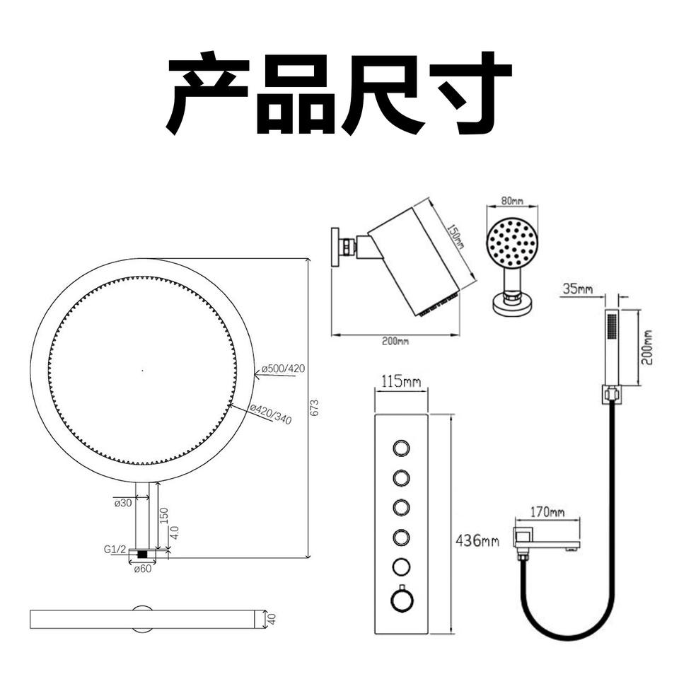 ชุดฝักบัวเทอร์โมสแตติก Dipsi King รุ่น 59A ทองเหลือง พร้อมหน้าจอดิจิตอลอัจฉริยะ ฝักบัวแบบมัลติฟังก์ชั่น สำหรับห้องน้ำ