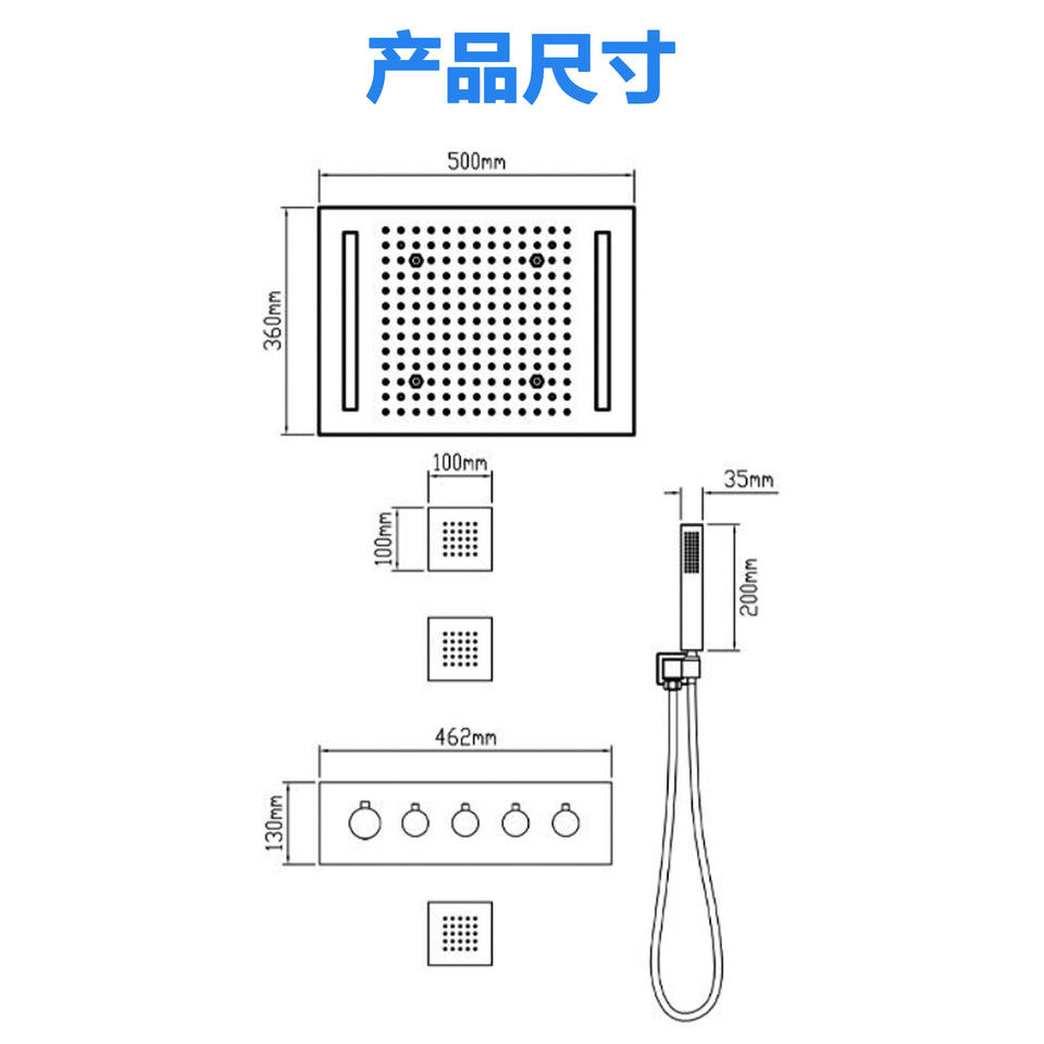 ชุดฝักบัว LED แบบฝังผนัง ดีไซน์ทันสมัย ยี่ห้อ Dipsidri ผลิตจากสแตนเลส พร้อมระบบควบคุมอุณหภูมิ สำหรับใช้ในบ้านและสปา