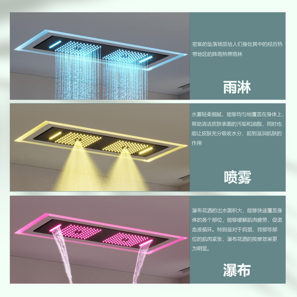 ฝักบัวสายฝนพร้อมไฟ LED ควบคุมอุณหภูมิและระบบสเปรย์นวดฟังก์ชัน