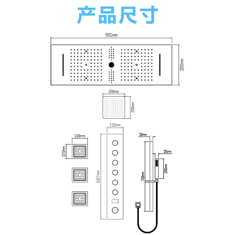 ชุดฝักบัวแบบฝังผนัง Dipsinshi ขนาด 900x300 มม. พร้อมไฟ LED ระบบนวดแบบ Rainfall และหน้าจอแสดงอุณหภูมิ สำหรับห้องน้ำในบ้าน