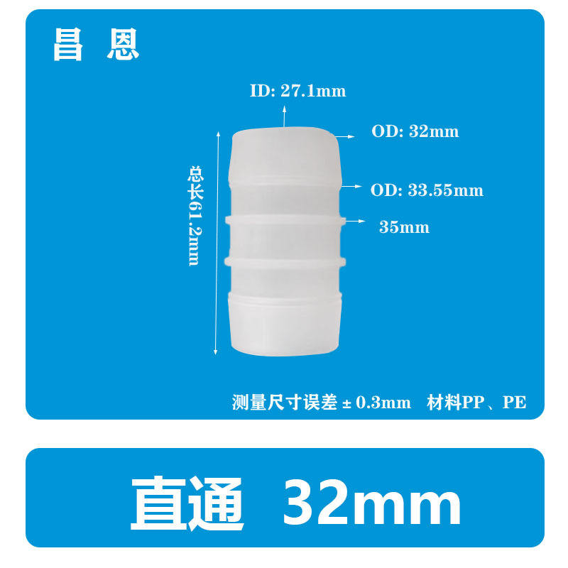 ข้อต่อท่อตรงแบบปลายแบน ขนาด 32 มม. ผลิตจากพลาสติกทนการกัดกร่อนและทนความร้อนสูง (แบบสองทาง)