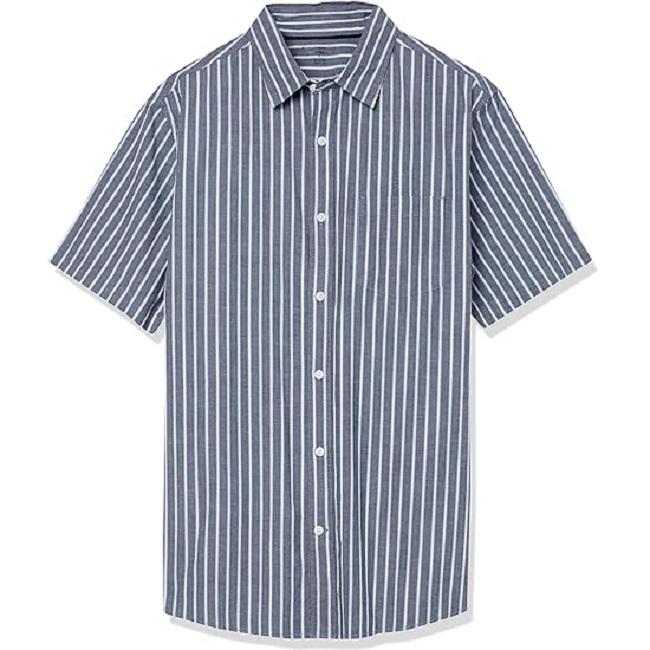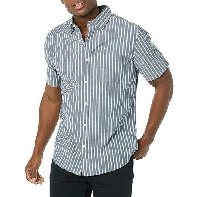 เสื้อผ้าฤดูใบไม้ผลิสำหรับผู้ชายเสื้อคอตตอนเข้ารูปแขนสั้นลายทางสีเทาสีเทา