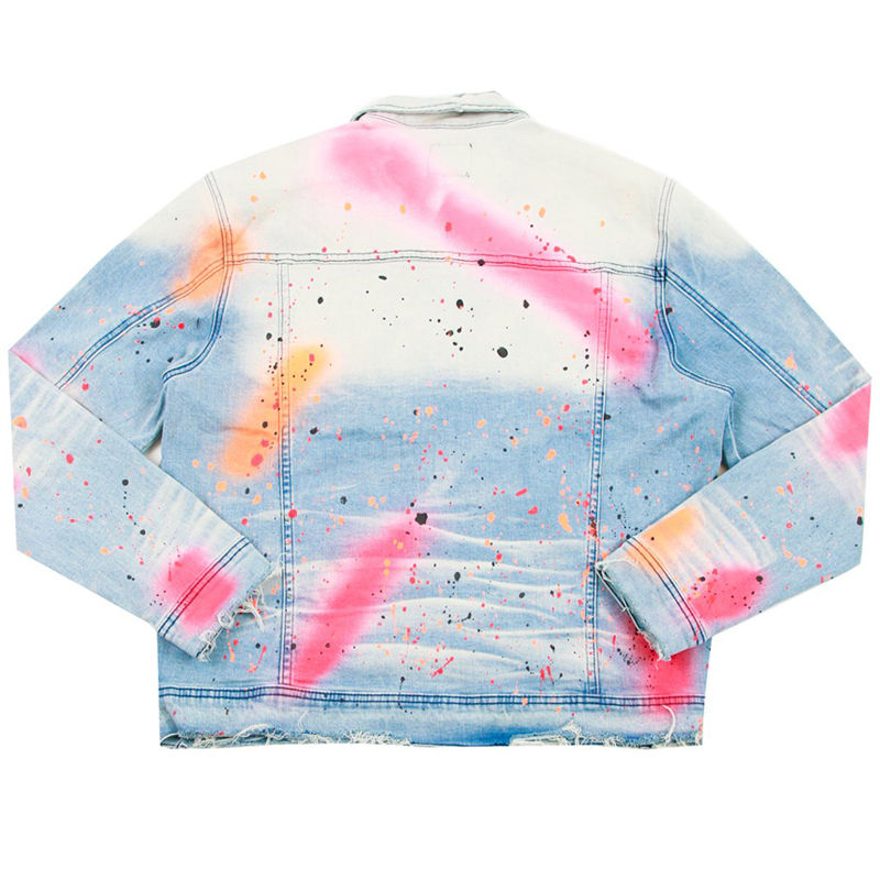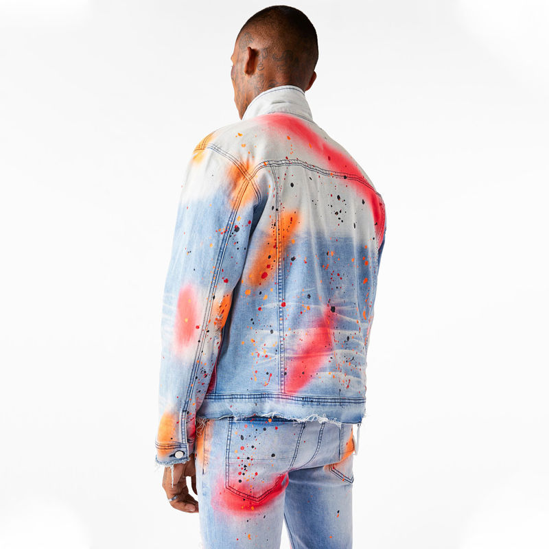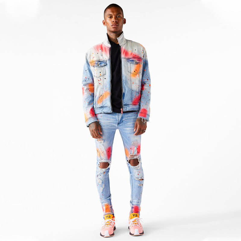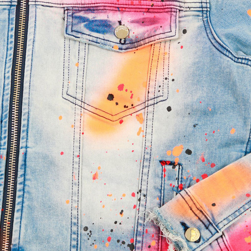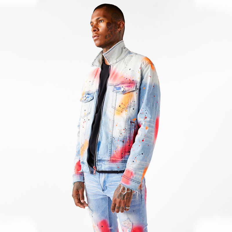 แจ็กเก็ตผ้ายีนส์สำหรับผู้ชายมีซิปตกแต่งสไตล์สตรีทแบบไม่เหมือนใครสำหรับฤดูใบไม้ร่วง