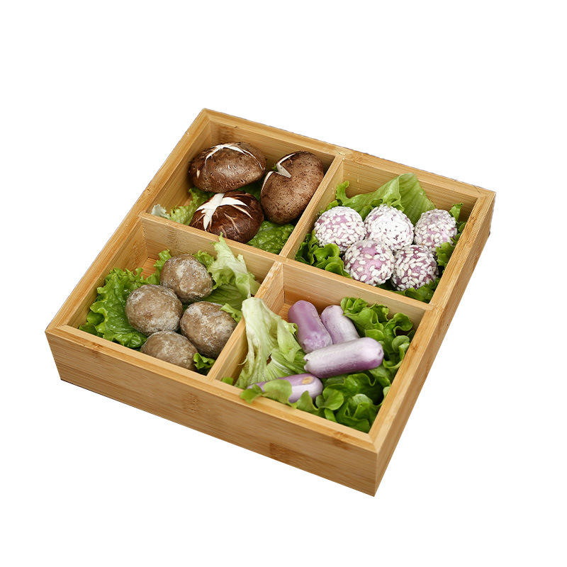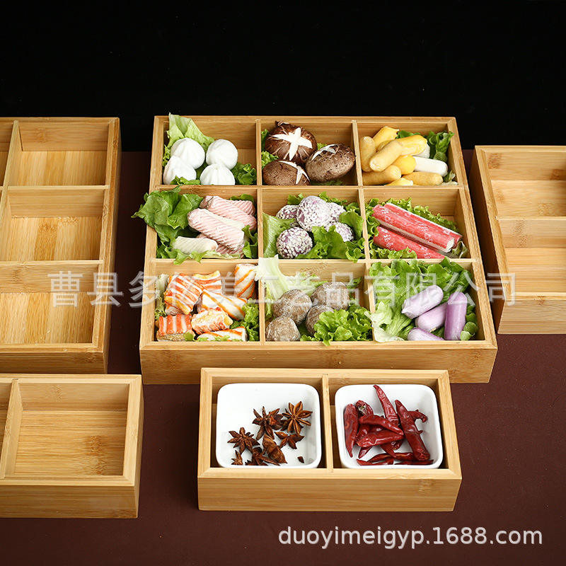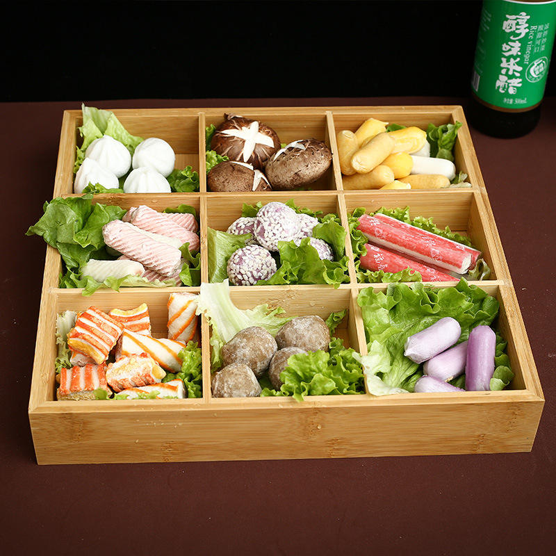 กล่องไม้ไผ่9ช่องเปิดหลายช่องสำหรับใส่ผลไม้และร้านอาหารชั้นวางหม้อร้อนจัดส่งจากโรงงานโดยตรง