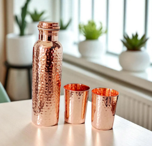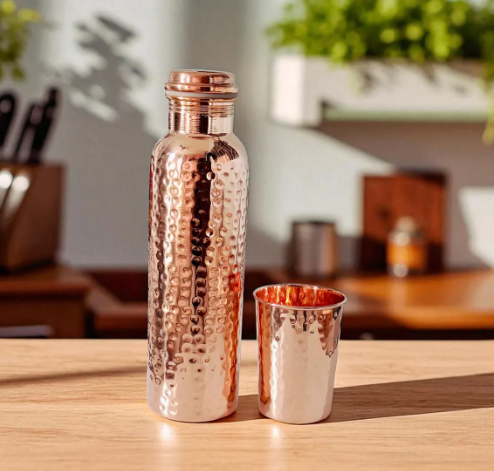 ขวดน้ำทองแดงบริสุทธิ์สำหรับน้ำดื่มขนาด34ออนซ์ทรงค้อนผลิตจากโรงงาน