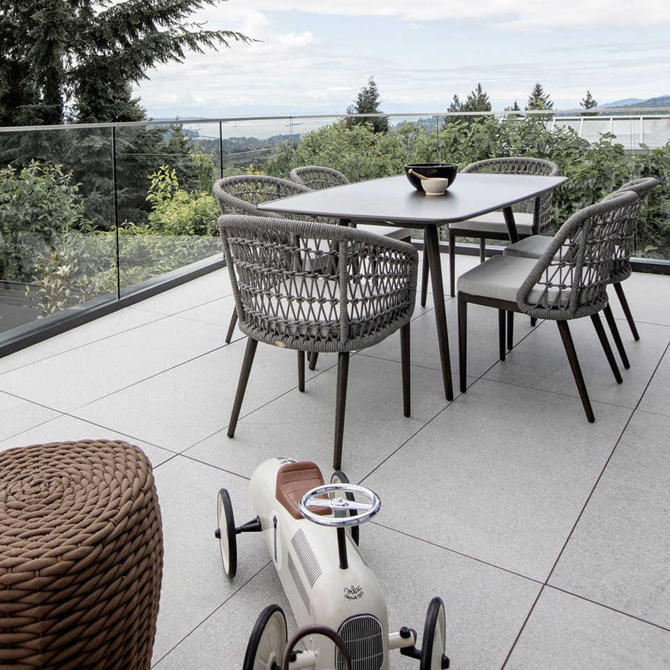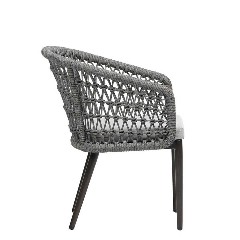 เก้าอี้รับประทานอาหารทรงโมเดิร์น ทนทาน เป็นมิตรกับสิ่งแวดล้อม กันน้ำ โครงอะลูมิเนียม เชือกถักมือ ดีไซน์หรูหรา สำหรับร้านอาหาร คาเฟ่ จากโรงงานโดยตรง