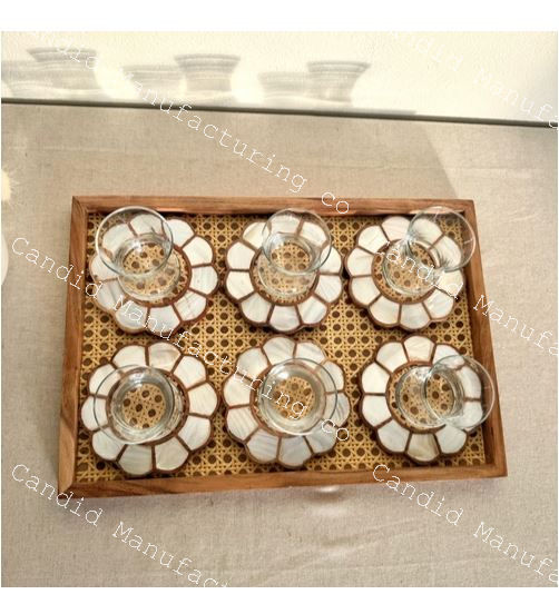 ชุดถาดรองแก้วชาชุดตกแต่งโต๊ะถาดเครื่องดื่ม6ชิ้นถาดรองแก้วลายดอกไม้ฝังมุก