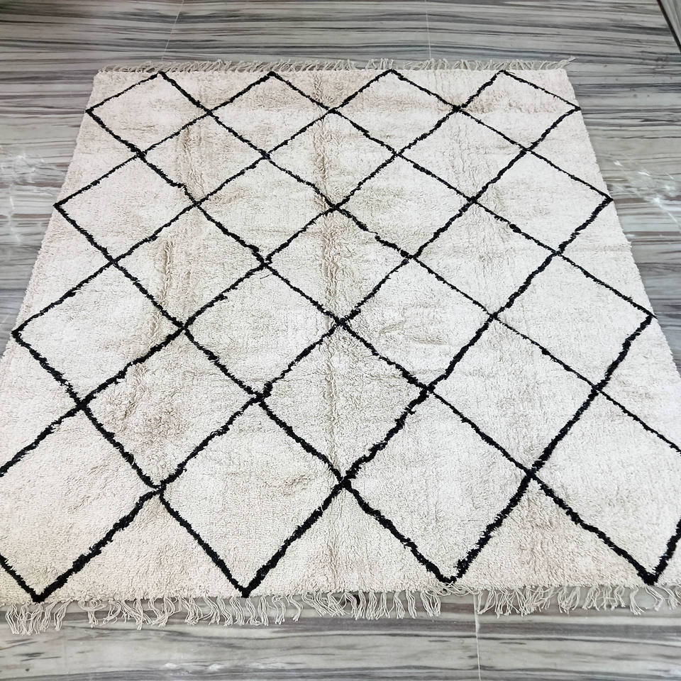 พรมผ้าฝ้ายแบบมีขนดกของโมร็อกโกงานทำมือทนทานปรับแต่งได้ขนาดได้ใส่สบายสำหรับบ้านห้องนอนเด็ก