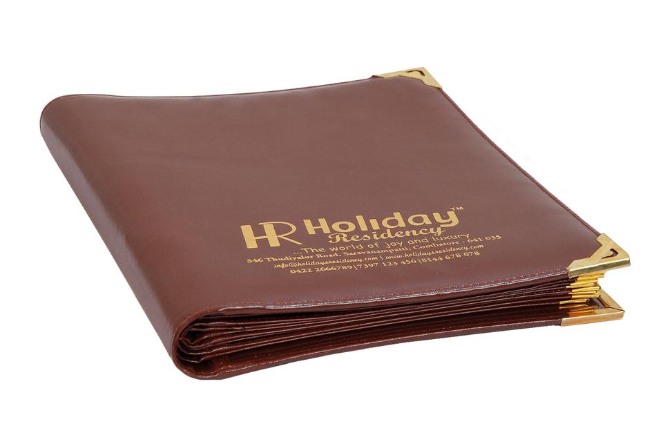 ราคาโรงงานโดยตรง ขายส่ง ปกเมนูหนังแท้ ยี่ห้อ ADORA รูปทรงสี่เหลี่ยมผืนผ้า ขนาด A4 งานตกแต่งอย่างดี รุ่น ADAMC-0140 สำหรับ