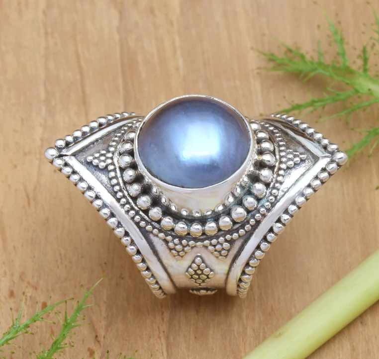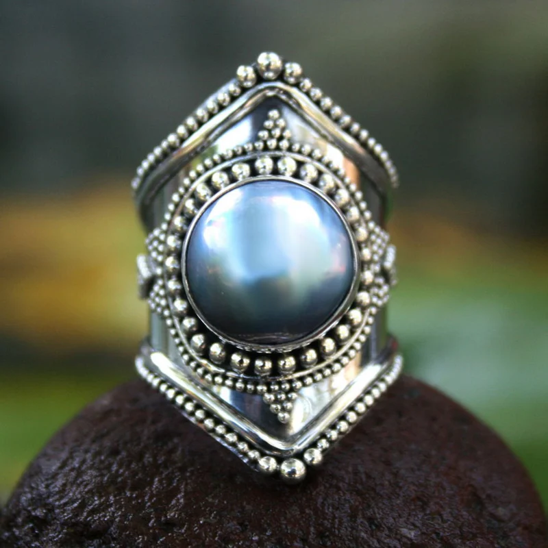 แหวนสมาธิทำจากเงินสเตอลิง925สำหรับงานแต่งงานเครื่องประดับอัญมณีไข่มุกที่ซื่อสัตย์สไตล์ Boho