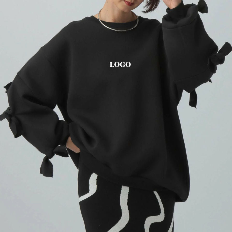 เสื้อสเวตเชิ้ตผ้าฝ้ายสไตล์ลำลองสำหรับผู้หญิง ดีไซน์โบว์ทันสมัย ราคาโรงงานโดยตรง ปี 2026 / เสื้อสเวตเชิ้ตแบบไหล่ตกสั่งทำคุณภาพสูง