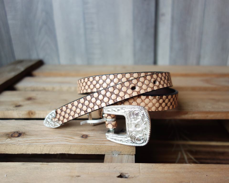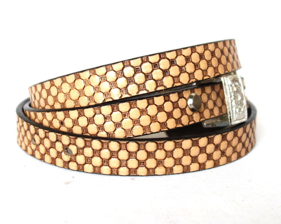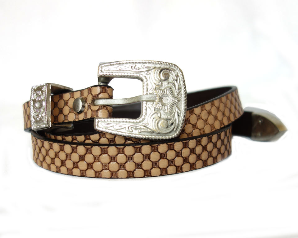 เข็มขัดแบบตะวันตกของผู้หญิงหนังวัวสีน้ำตาลความยาวตามสั่งดีไซน์วินเทจความยาว1.75ซม.