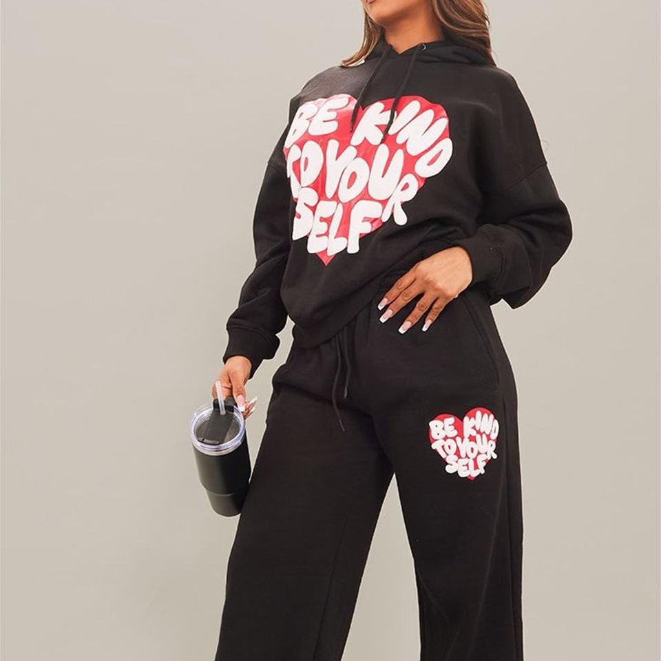 เสื้อสเวตเชิ้ตพิมพ์ลายด้านหน้าและด้านหลังแขนยาวสีดำ