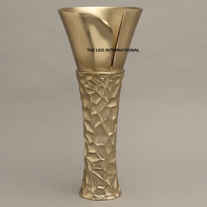 แจกันดอกไม้โลหะงานแฮนด์เมดวางตรงกลางสำหรับงานแต่งงานทำจากอลูมิเนียมขัดเงามาตรฐานสูง