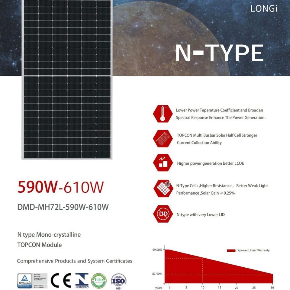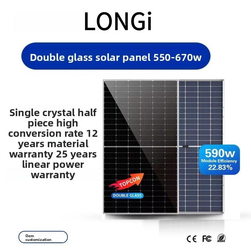 ขายตรงจากโรงงาน แผงโซลาร์เซลล์ Longji คุณภาพสูง 450W-600W โมโนคริสตัลไลน์ ได้รับการรับรองมาตรฐาน TUV แบบ Half Cell