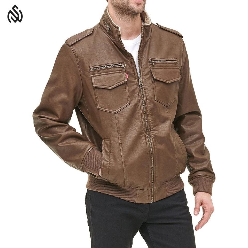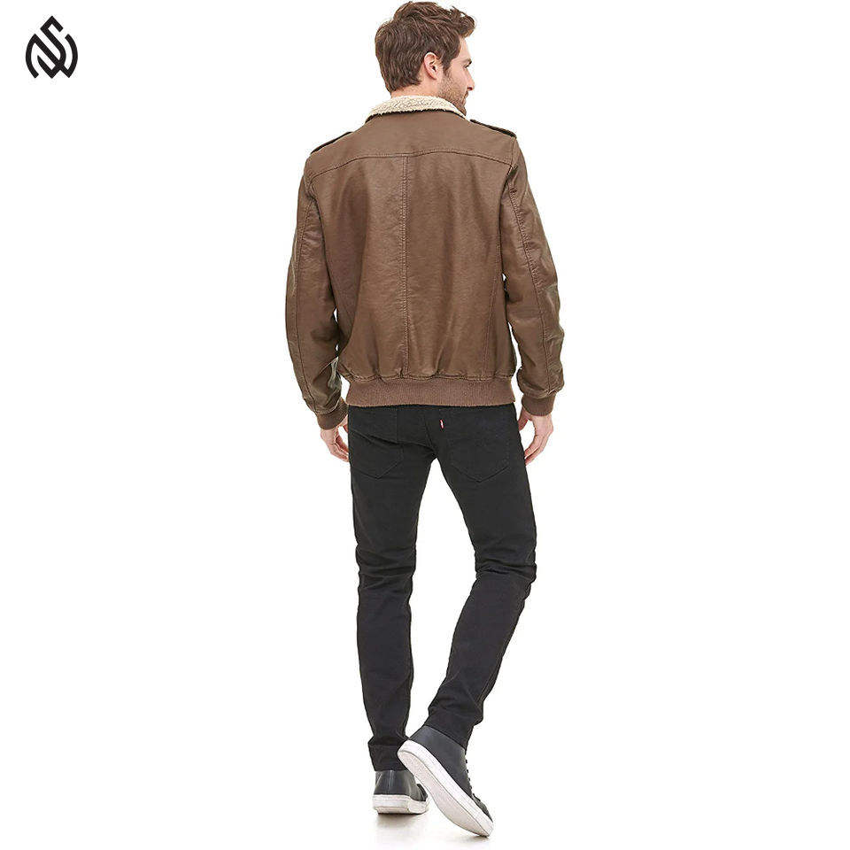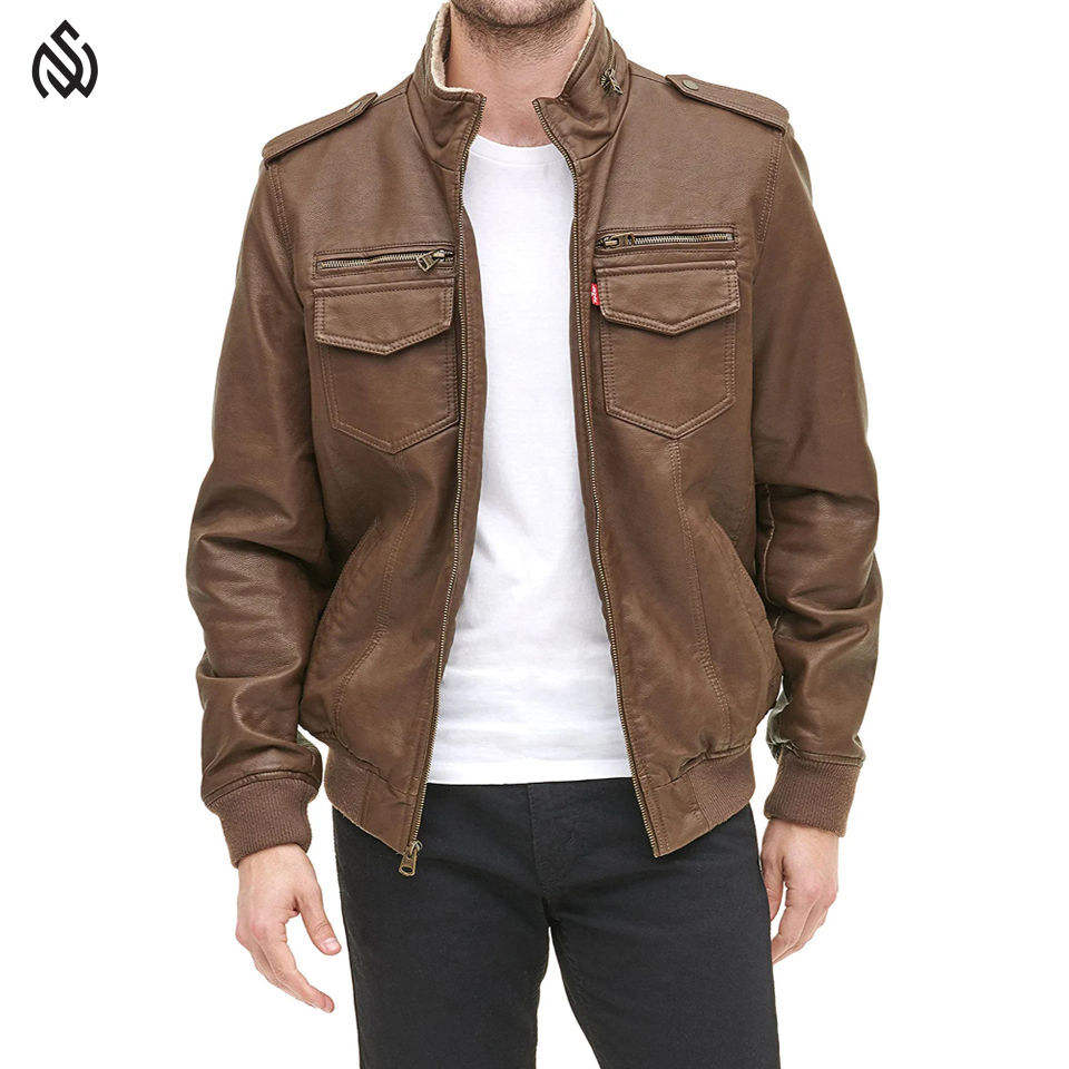 แจ็กเก็ตหนัง PU แท้คอตั้งสำหรับผู้ชายใส่โลโก้ได้ตามต้องการสำหรับฤดูหนาว