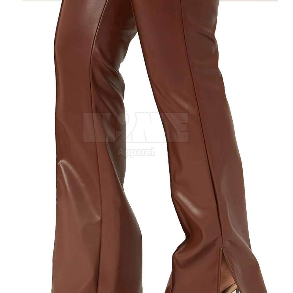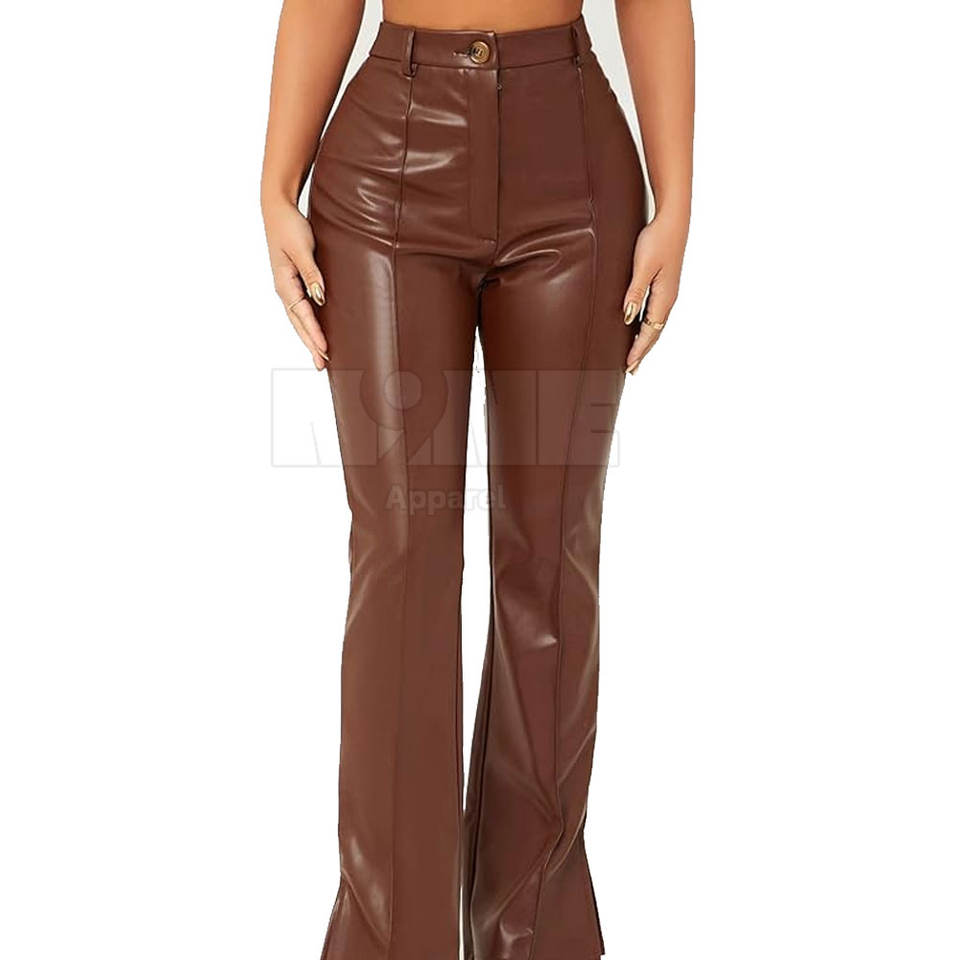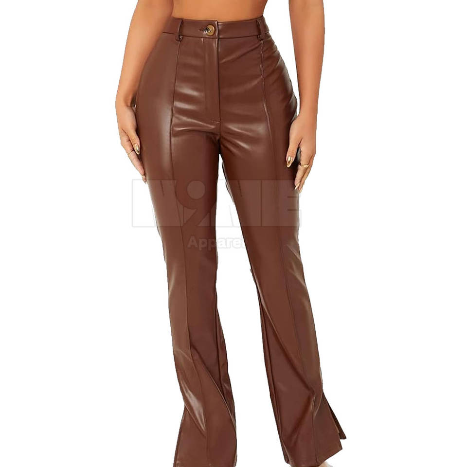 กางเกงหนังผู้หญิงเอวปานกลางแบนด้านหน้าสไตล์ใหม่เหมาะสำหรับฤดูหนาว