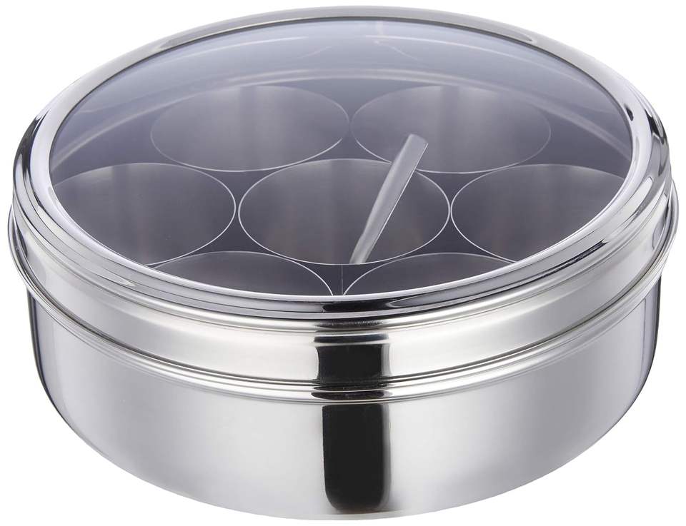 คำอธิบาย:ภาชนะใส่เครื่องเทศ Masala Dabba จากสแตนเลสของอินเดีย