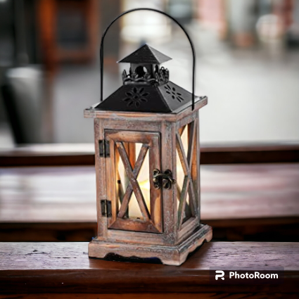 โคมไฟพายุเฮอริเคนทำจากไม้ตกแต่งสไตล์วินเทจสำหรับตกแต่งสวนกลางแจ้งในบ้านโคมไฟเชิงเทียน
