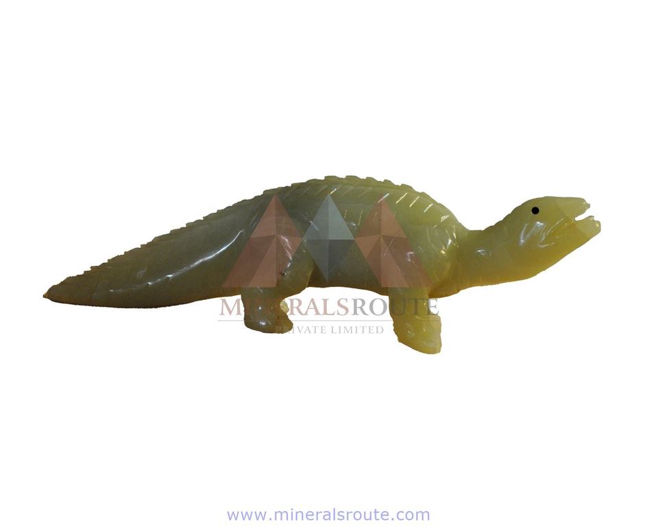 งานศิลปะหินธรรมชาติสุดพิเศษจากโรงงานโดยตรง - ไดโนเสาร์ทำมือจากหินออนิกซ์สีเหลือง กันน้ำ เหมาะสำหรับตกแต่งบ้าน