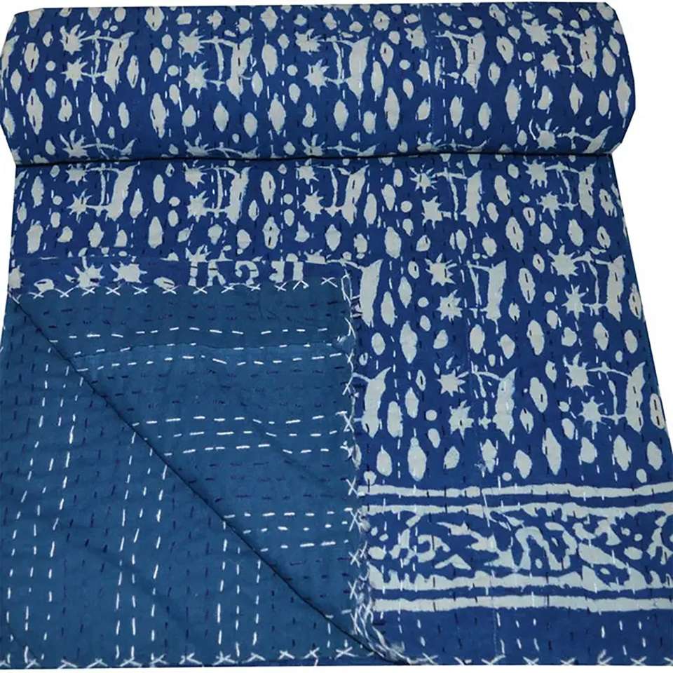ผ้าคลุมเตียงควีนไซส์ ผ้าฝ้าย 100% ลายบล็อกพิมพ์คันธา ย้อมมือ ทำมือ สำหรับใช้ในบ้าน จัดจำหน่ายโดยตรงจากโรงงาน