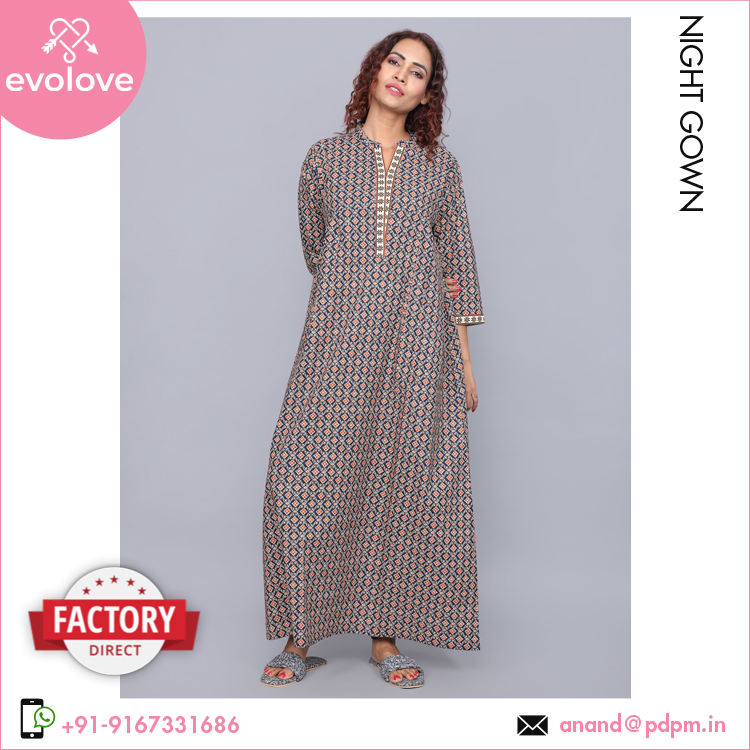 ชุดราตรีผ้าฝ้าย100% ยาวเต็มตัวสำหรับผู้หญิงมีสารกันแบคทีเรียลายซุปเปอร์ซอฟต์พิเศษ