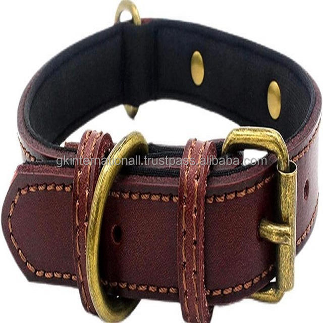 โรงงานโดยตรงจัดหาอุปกรณ์เสริมสุนัขนุ่มเบาะหนังสีน้ำตาลปลอกคอสุนัขสำหรับสัตว์เลี้ยงทั้งหมดที่มีอุปกรณ์ทองเหลืองโบราณชุบแข็ง