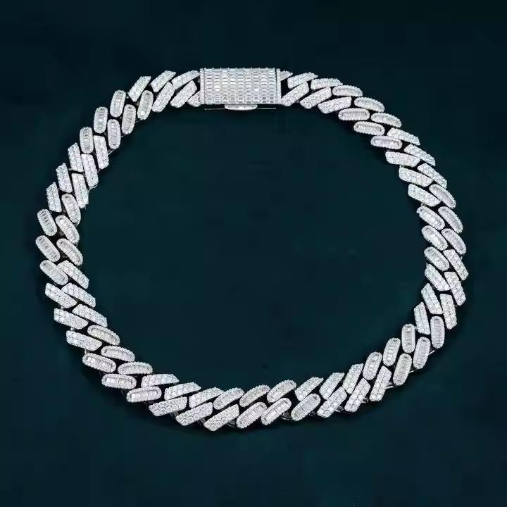 สร้อยคอสไตล์ฮิปฮอปโซ่คิวบาสีเงินสีขาวชุบทองสร้อยคอโซ่ชั้นดีสำหรับผู้ชายส่งตรงจากโรงงาน