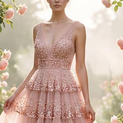 Direct Factory Supply Luxury Sequin Wedding Dresses Beaded Evening Dress Sleeveless Evening Dress Wholesale Manufacturer