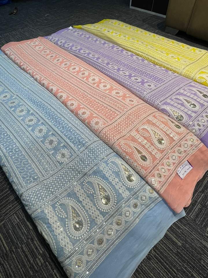 ผ้าวิสโคสจอร์เจตต์ปักลายลัคโนวีจากโรงงานโดยตรง ราคาขายส่งสำหรับชุดแต่งงานผู้หญิง ทำจากผ้าฝ้าย