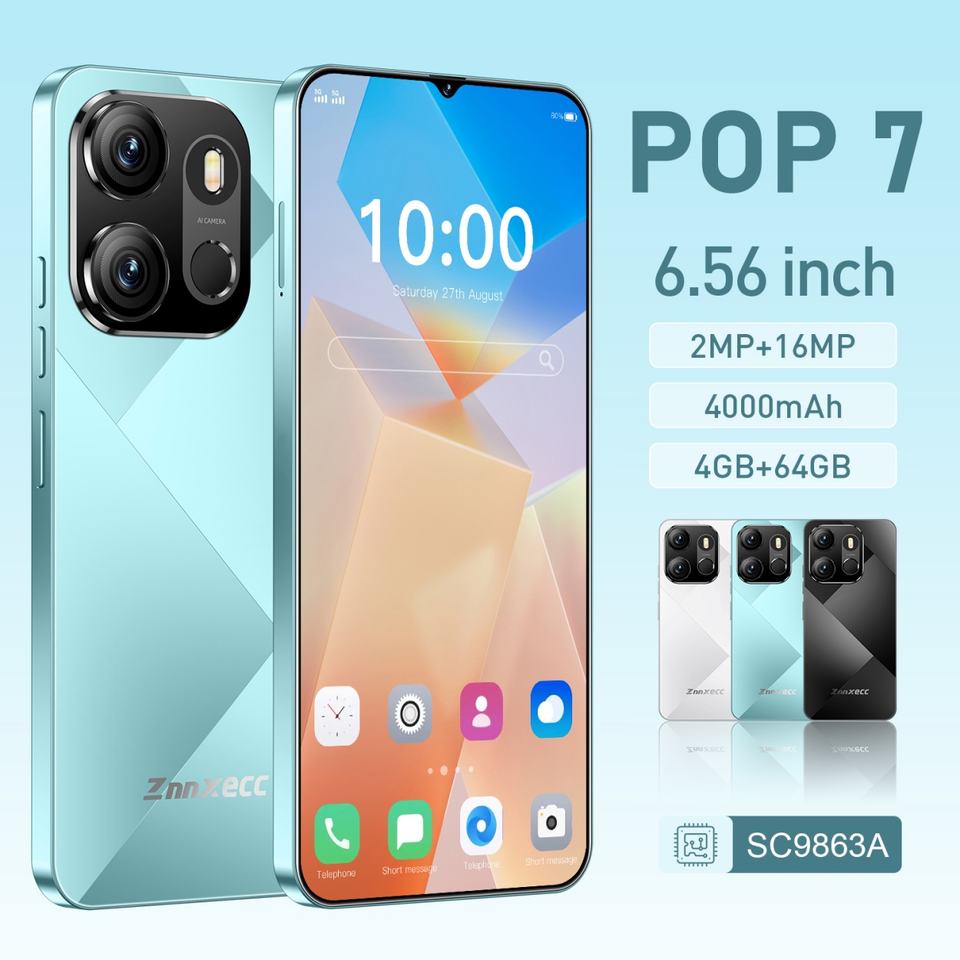 จัดหาโดยตรงจากโรงงาน ZNNXECC POP7 โทรศัพท์มือถือหน้าจอใหญ่ 6.6 นิ้ว ความจุ 4+64GB รองรับ 2 ซิม สแตนด์บายคู่ ระบบจดจำใบหน้า Octa Core ภาษาฝรั่งเศส