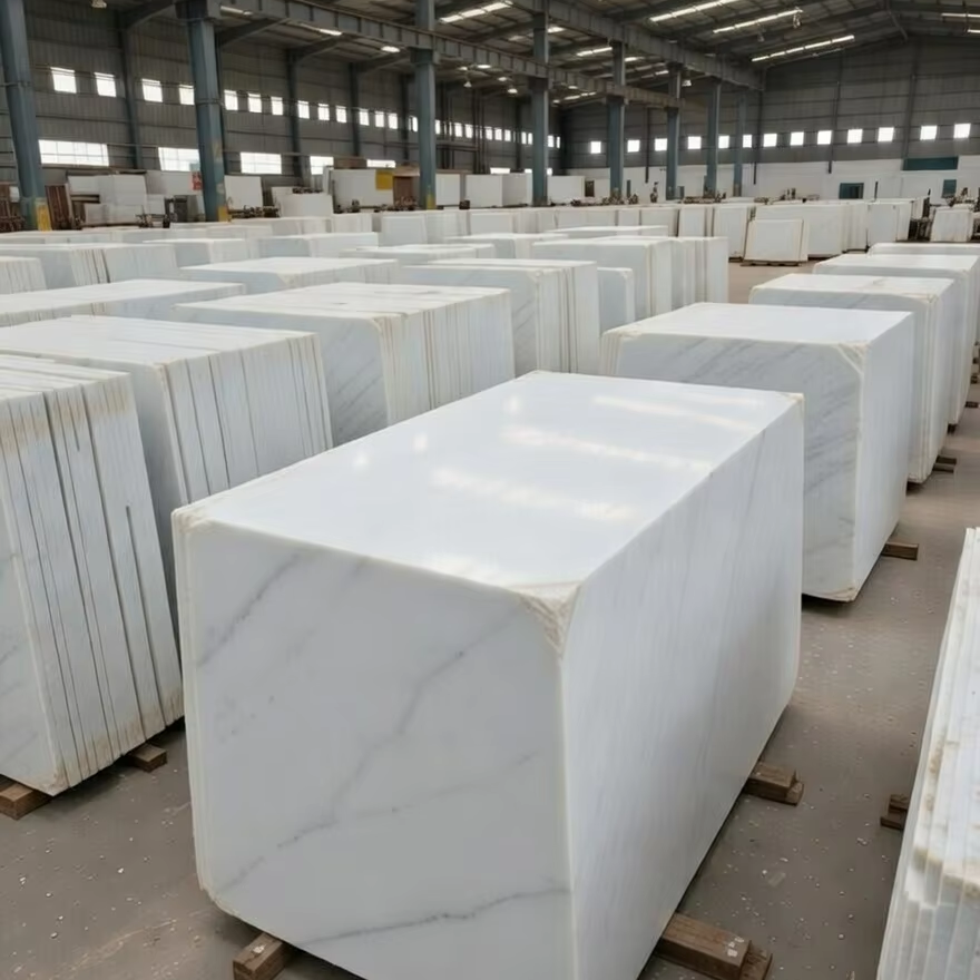 หินอ่อนสีขาวเวียดนามจากโรงงานโดยตรง สำหรับเคาน์เตอร์และบันได วัสดุหินธรรมชาติ บล็อกขนาดใหญ่ ขายส่ง