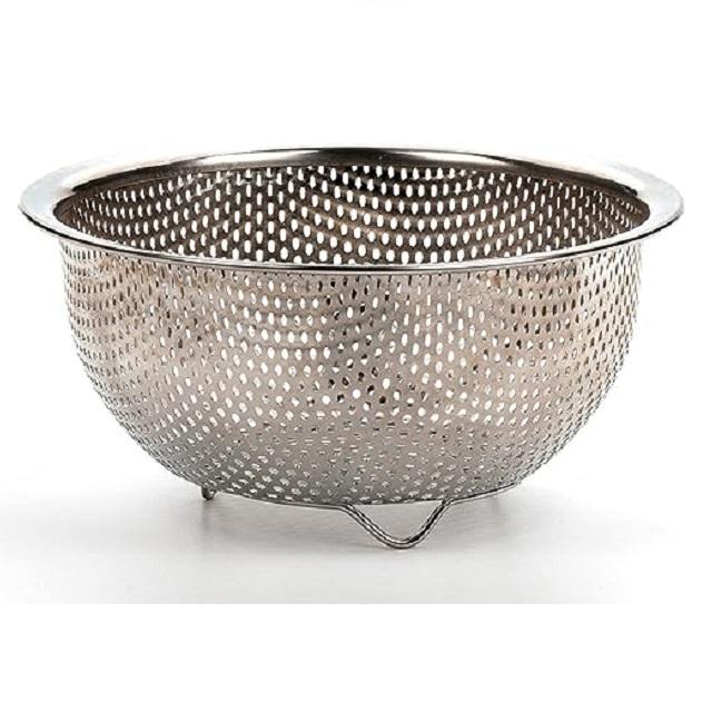 ตะแกรงโลหะสีขาวผลิตภัณฑ์เครื่องครัวตะกร้าที่ระบายน้ำสำหรับผักข้าวผลไม้