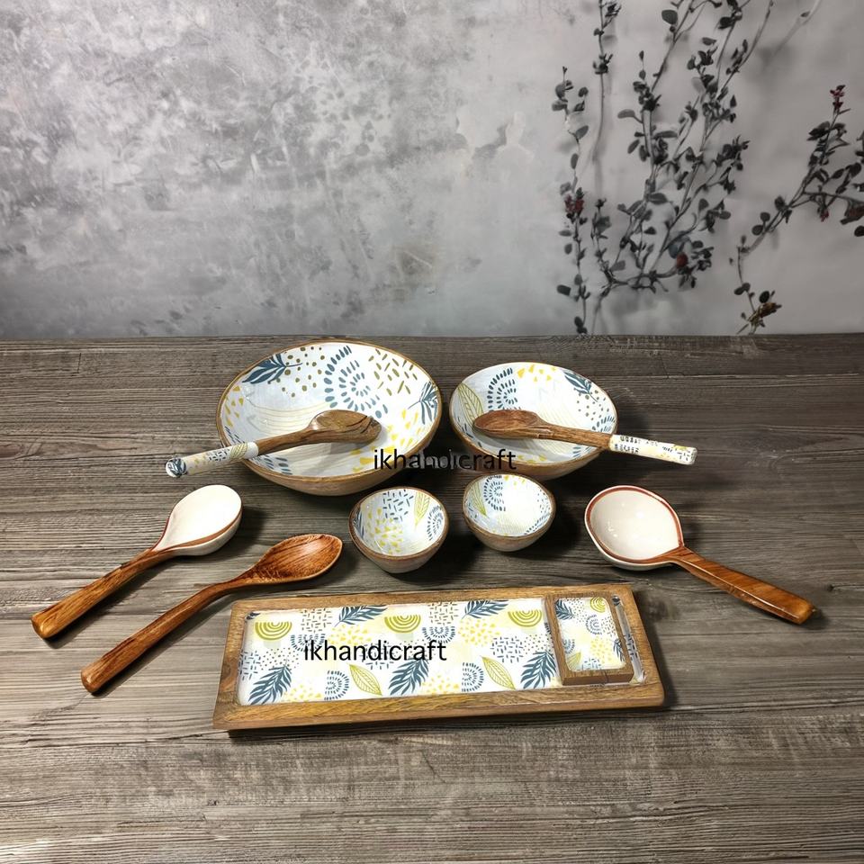 ชุดชามไม้เคลือบโบฮีเมียนแบบสั่งทำชุดของขวัญงานปาร์ตี้แบบใช้แล้วทิ้งเป็นมิตรต่อสิ่งแวดล้อม