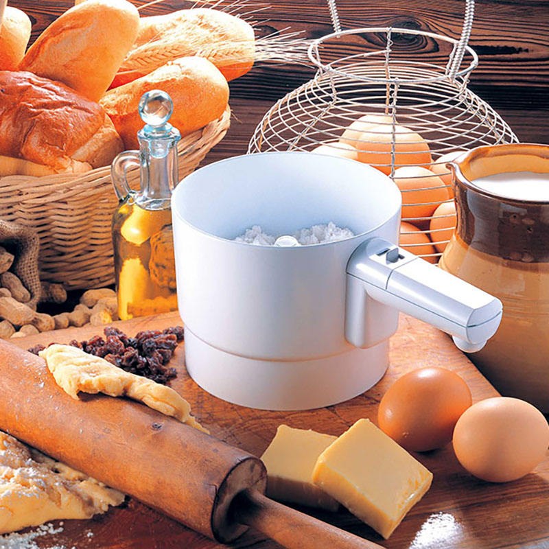 โดยตรงแฟชั่น Bpa ฟรีปรับตาข่ายสีขาวคู่มือกรองแป้งครัวเรือนเครื่องมือห้องครัว