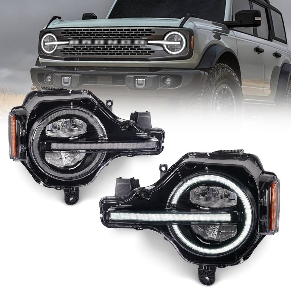 ไฟหน้า LED แบบคู่สำหรับ Ford bronco 2021-2025อะนิเมชั่นสตาร์ทอัพสัญญาณไฟสูง/ต่ำ