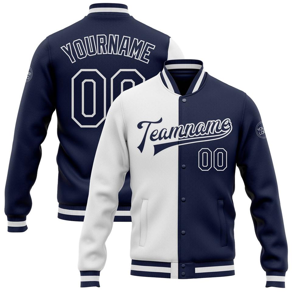 Direct Industry Wholesale Casual Winter Custom White Navy Bomber Full-Snap Varsity Letterman Split Fashion Jacket