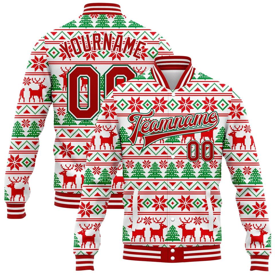 แจ็กเก็ตแบบ Full-Snap สำหรับ3D คริสต์มาสสีเขียวถั่วลันเตาสีเขียวขาว-แดงแบบลำลองฤดูหนาว