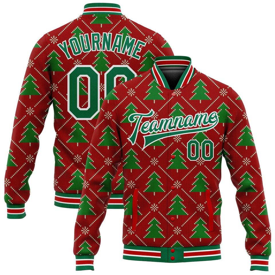 แจ็กเก็ตบอมเบอร์แบบเต็มตัวสำหรับ3D คริสมาสต์เคลลี่สีเขียว-ขาวแบบลำลองสำหรับฤดูหนาว